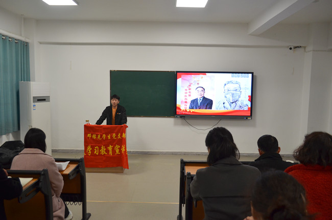 11月30日,邓稼先学生党支部到安庆医药高等专科学校开展党史宣讲活动。宣讲团结合医学类专业特点,选择讲好抗疫先锋的故事,用钟南山、张伯礼等一大批冲在一线抗疫英雄的感人事迹深刻阐释伟大抗疫精神,旨在弘扬昂扬向上的新时代中国精神,引导广大大学生坚定专业报国的理想信念,珍视生命、热爱学习、勤奋钻研、勇于实践,自觉锤炼意志品质,练就过硬本领,厚植家国情怀,深入培育和践行社会主义核心价值观,争做民族复兴大任的时代新人。