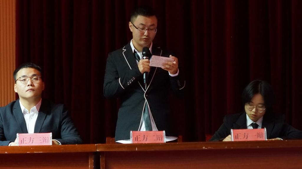 一辩口误被调侃是对方五辩、泰勒公式提问被破解,电子信息类专业2021(1)班代表队接连失误让局势陡转,开篇立论“定”下的优势被逼到“悬崖边”。“你们对大数据的定义从何而知?”“你们也承认大数据有弊端是吗?”正方三辩、电子信息类专业2021(1)班的杨浩抓住时机,通过提出一系列问题与合理打断对手相结合的方式,在论证本方辩题的同时让对方无法展开反驳,稳住当前局面并提前锁定胜局。
