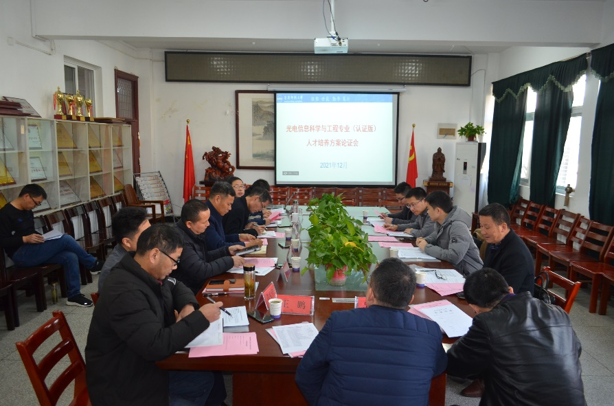 为全面贯彻落实新时代党的教育方针和全国教育工作大会精神,提高人才培养质量,切实推进光电信息科学与工程专业工程教育认证工作。永利于12月6日在稼先楼二楼会议室召开了光电信息科学与工程专业人才培养方案(认证版)企业专家论证会。论证会邀请了合肥中科光博量子科技有限公司市场总监叶丛雷、安徽至博光电科技股份有限公司董事长秘书林继平、合肥琪峰光电科技有限公司总经理李传新和安徽兆利光电科技有限公司总经理胡学军等四位行业专家,学校教务处处长潘锦云、教学评建办主任黄兴帅、3044am永利集团3044noc党委书记夏云高、院长董甲东、党委副书记关德军,副院长江善和、章礼华,电子系主任、办公室主任和光电信息教研室全体成员参加了本次论证会。论证会由院长董甲东主持。